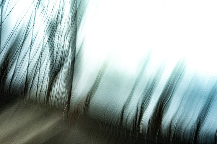 Die Bäume an der Brücke bekommen durch die Bewegungsunschärfe etwas Bedrohliches, während die Brückenkonstruktion selbst zu etwas Unerkennbarem verschmilzt. Ein